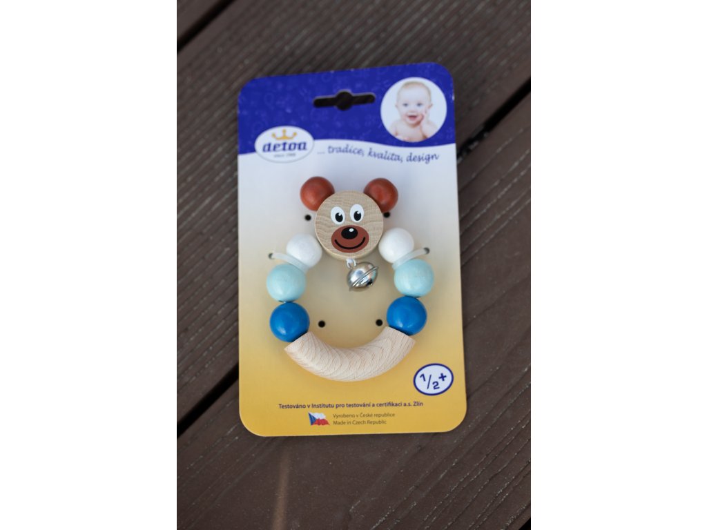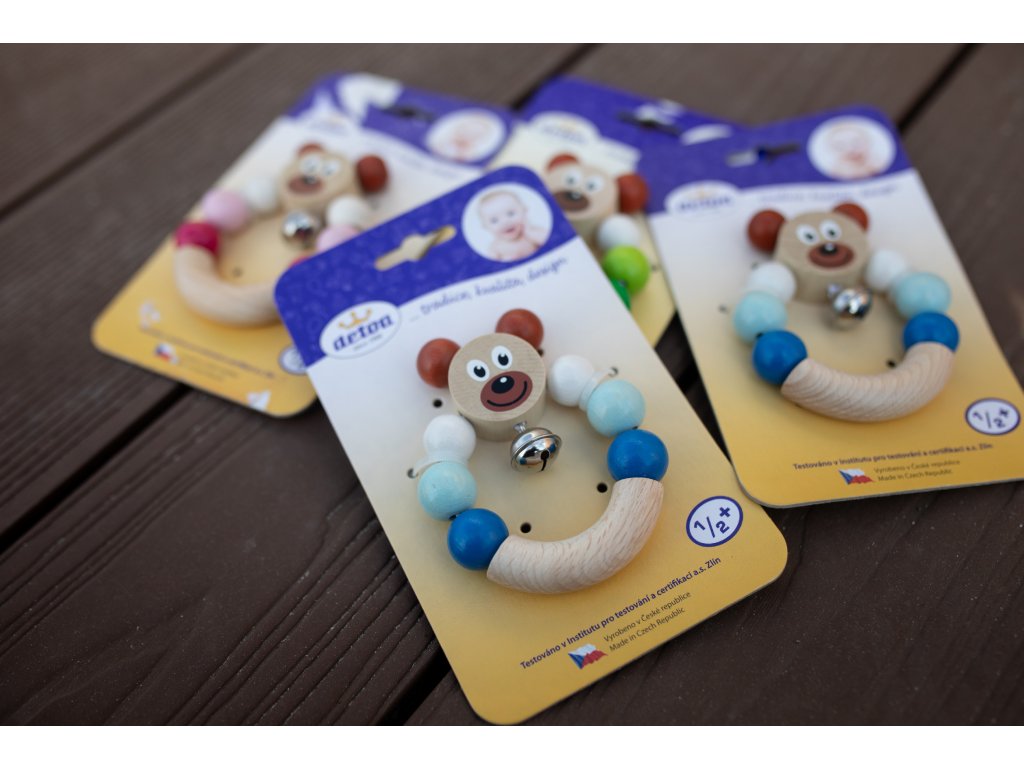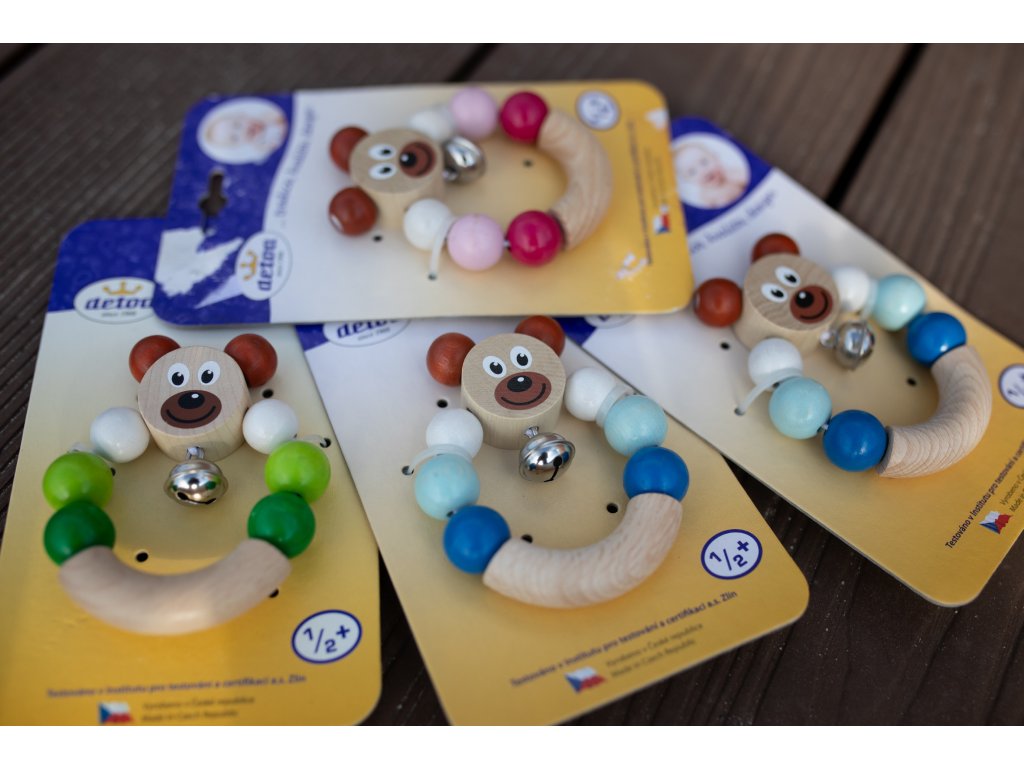 Dřevěné chrastítko medvídek Detoa – první hračka pro miminko