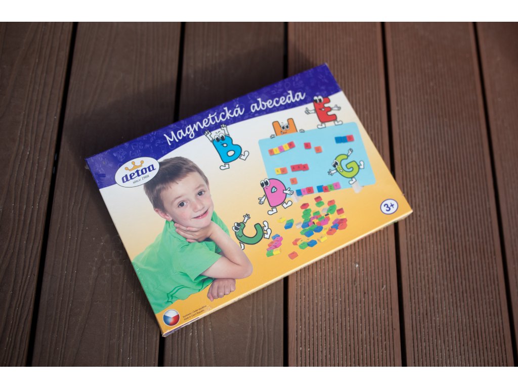 Magnetická abeceda Detoa s dřevěnými písmenky a diakritikou učí děti první slova zábavnou formou. Rozvíjí jemnou motoriku a logické myšlení.