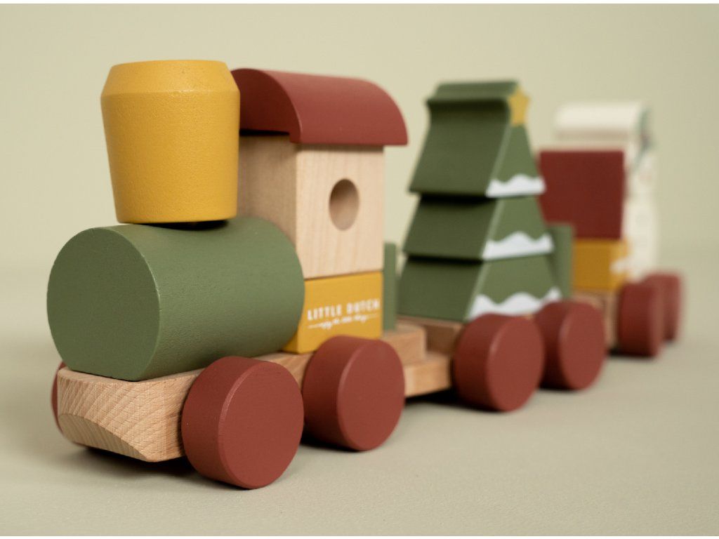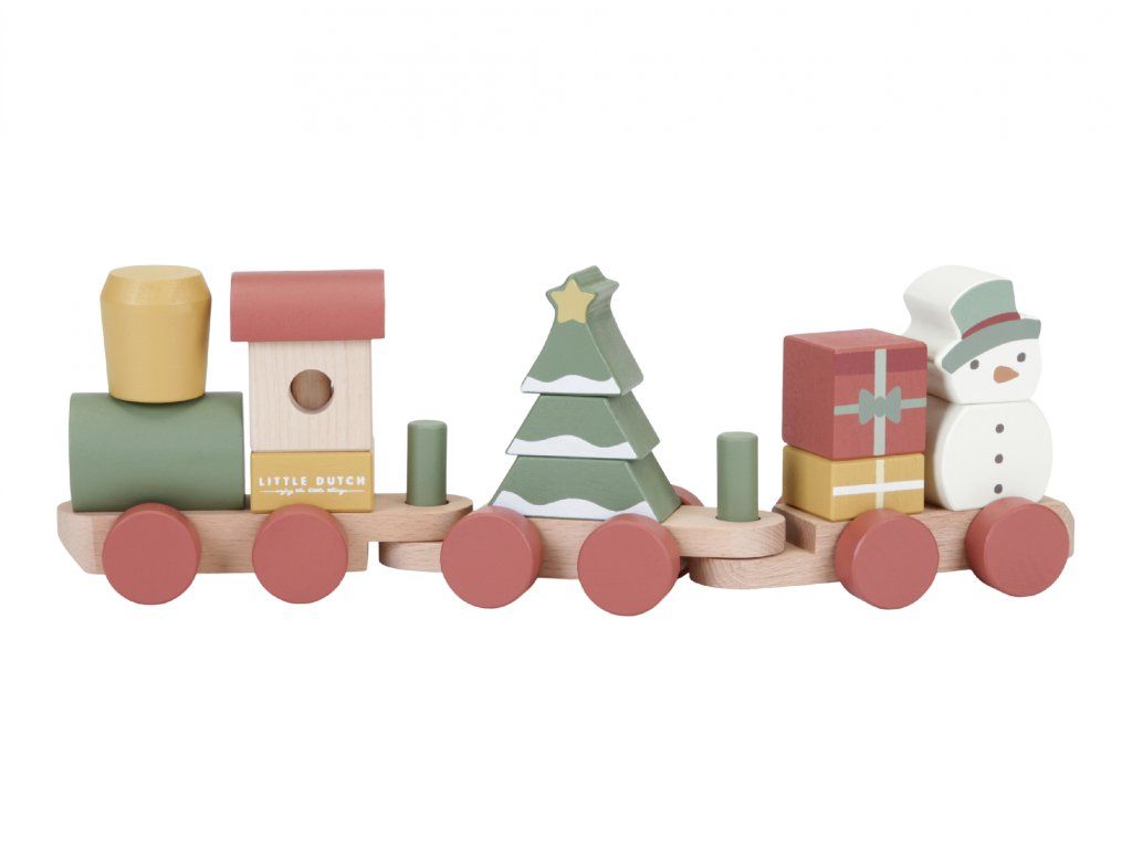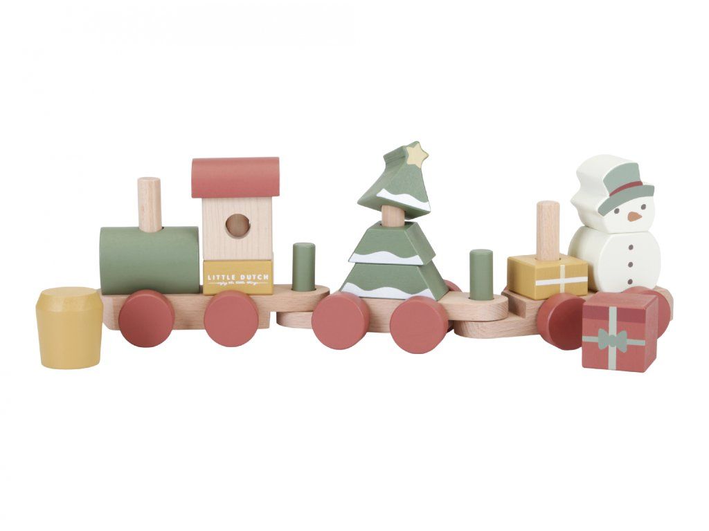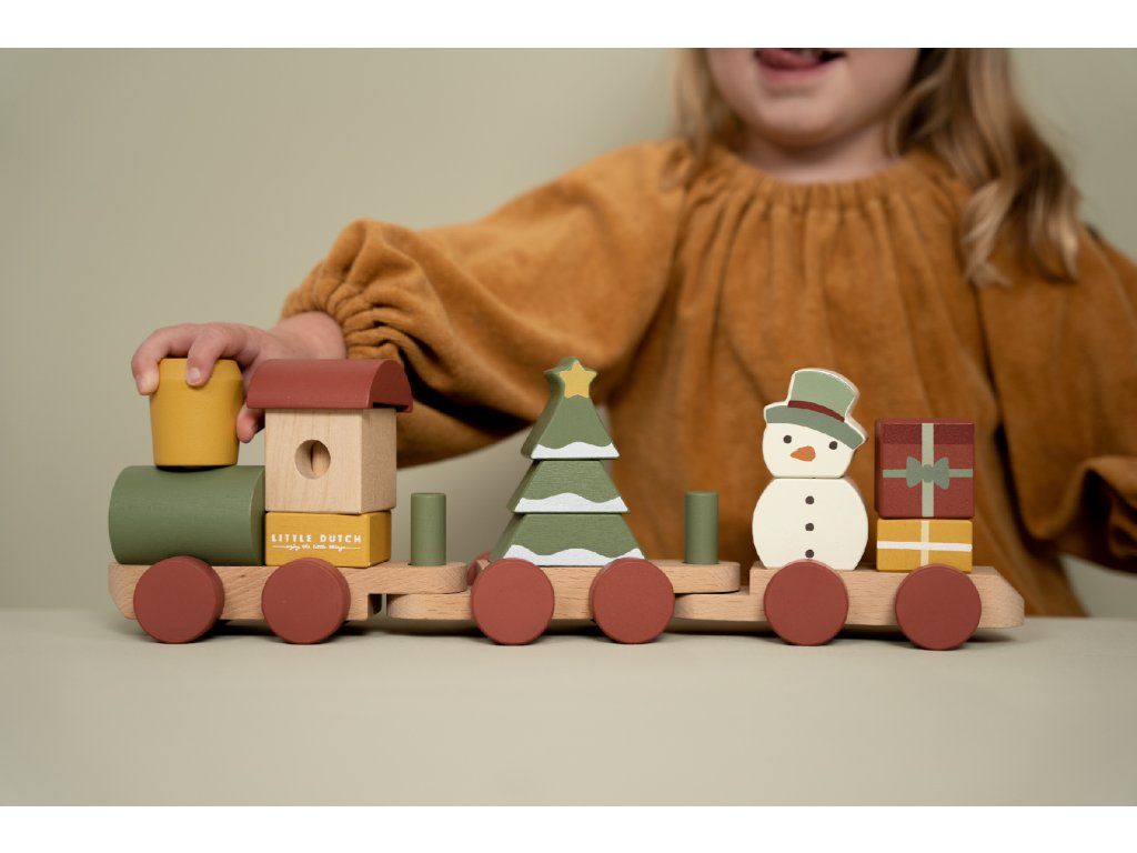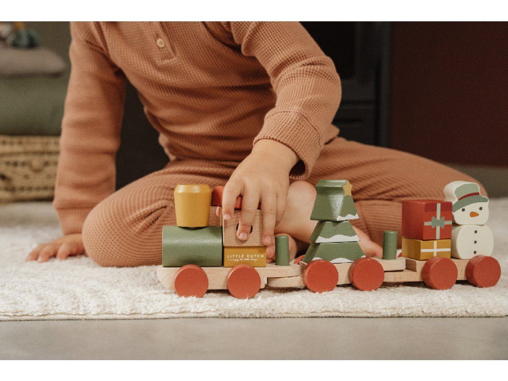 Speciální vánoční edice od Little Dutch přináší dětem kreativní zábavu i kouzelnou atmosféru Vánoc. Vláček je složen z barevných dřevěných kostek s vánočními motivy, které lze libovolně kombinovat a vytvářet různé varianty vagónů.