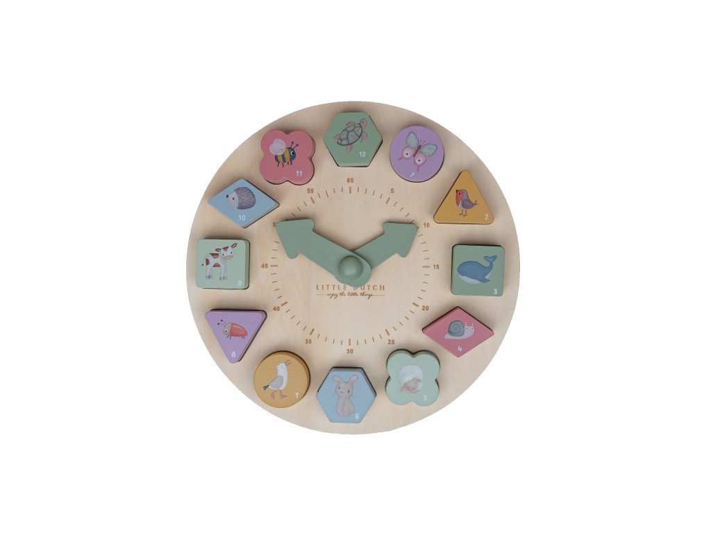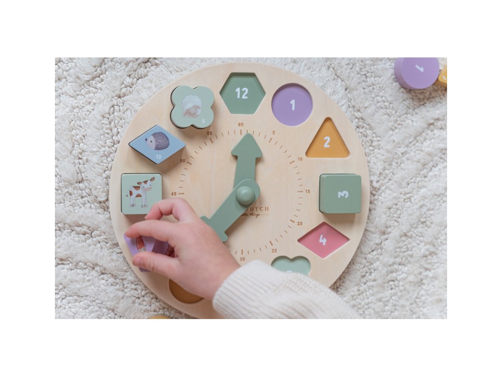 S pomocí puzzle hodin Little Dutch se děti učí rozpoznávat barvy, čísla, tvary i zvířátka.