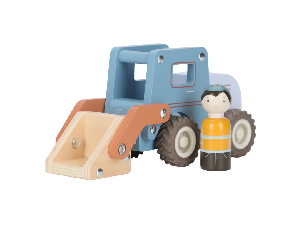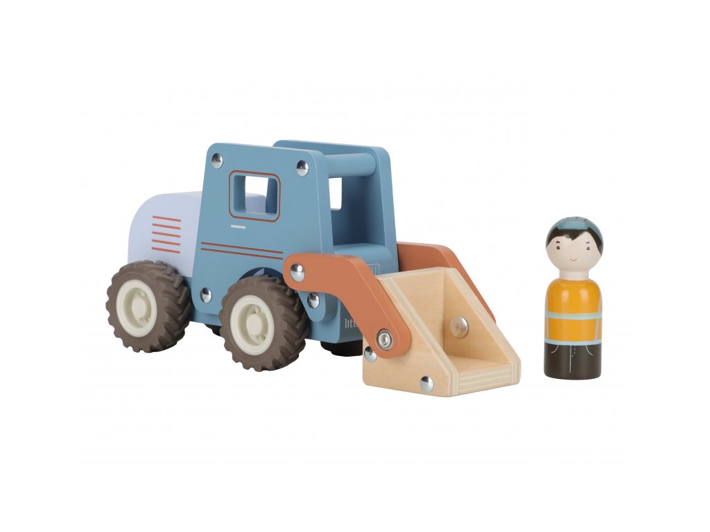 Součástí hračky je dřevěná figurka stavbaře, která rozšiřuje možnosti hry a podporuje představivost. Nakladač můžete kombinovat s dalšími stavebními vozidly – například s autojeřábem, míchačkou nebo sklápěčkou – pro kompletní stavební dobrodružství.