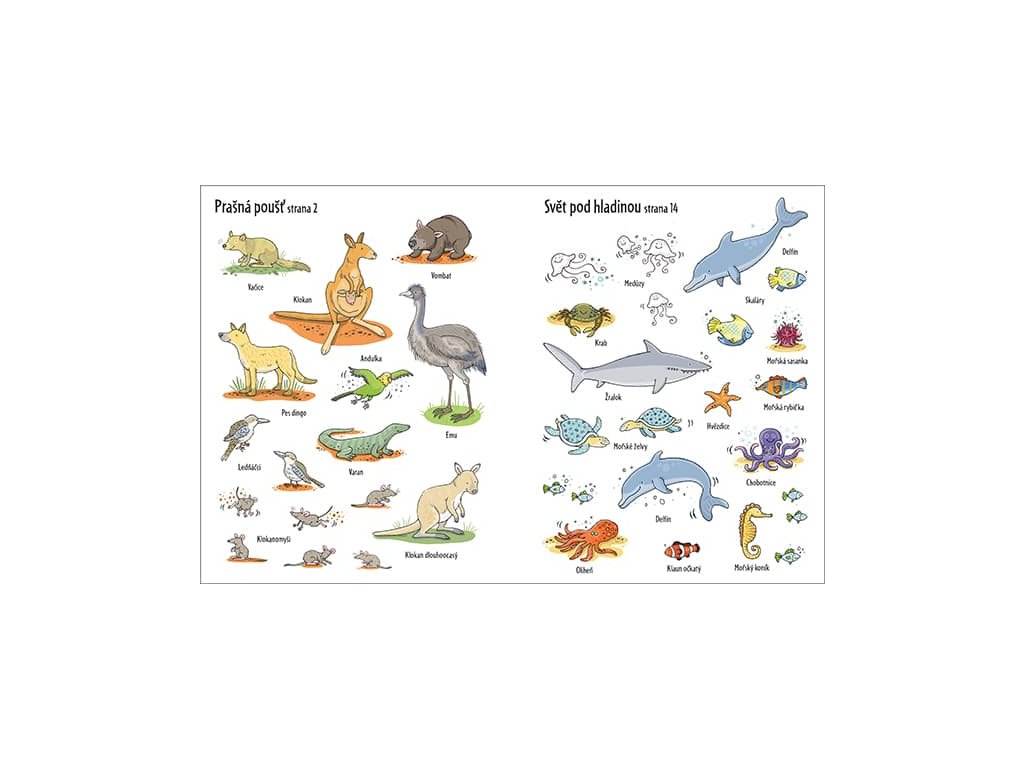 Samolepková knížka plná obrázku zvířátek.