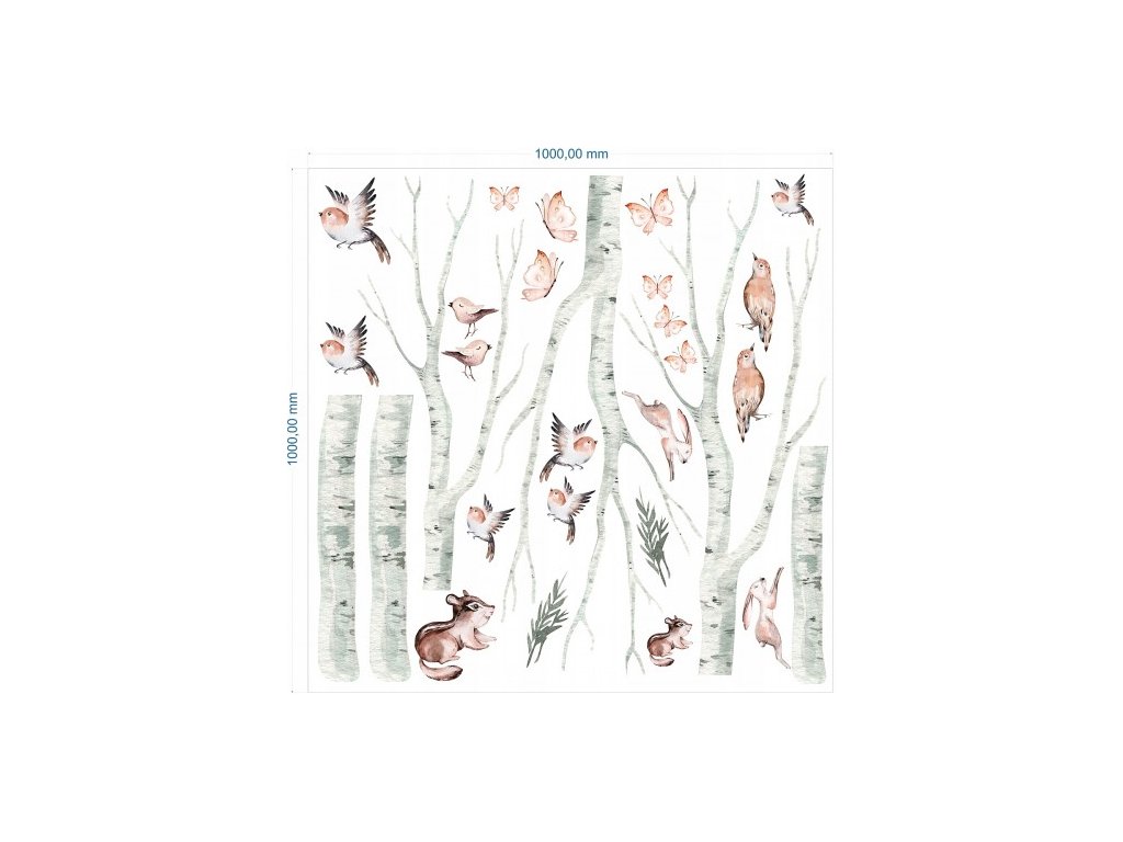 Břízy s ptáčky obdobnými akvarelové malbě, velikost archu 100x100cm.